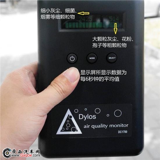 俗話說,工欲善其事必先利其器。我們使用的測試儀有兩種數(shù)據(jù)(如下圖),左邊的為直徑小于0.5微米的小顆粒物(如細小灰塵、細菌、煙霧等細顆粒物)每0.01立方英尺中的數(shù)量;右邊的是直徑大于2.5微米的大顆粒物(如大顆;覊m、花粉、孢子等粗顆粒物)每0.01立方英尺中的數(shù)量。這些都是對人體呼吸道系統(tǒng)有嚴重影響的東西。