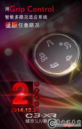C3-XR的Grip Control多路況適應系統(tǒng),可以針對當前的路面條件做出最“智能”的響應。沙地、雪地、泥地、ESC關閉、公路等5種路況模式輕松切換,剩下的翻溝越坎,C3-XR完全可以幫你搞定。不會越野?駕駛技術稀松平常?在遇到壞路、爛路就“趴窩”?從此這些都不叫事兒。