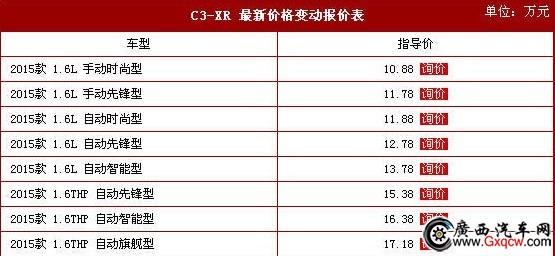 推薦理由:對于東風雪鐵龍來說,C3-XR擔負著首款SUV的重要使命。 從空間、配置到方面來看, C3-XR的綜合表現都非常不錯。其*大的賣點無疑是強勁的動力系統(tǒng)、豐富的科技化配置以及寬敞的乘坐空間。 相對更強勁的動力,也更符合當下年輕人的購車需求。至外觀和內飾設計,我相信絕大多數年輕消費者也會很滿意。具體價格請詳見下表: