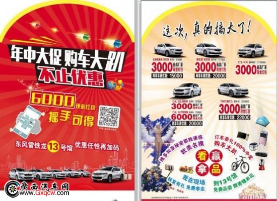1、東風(fēng)雪鐵龍廣西龍康4S店推出全系*高6000元現(xiàn)金紅包搖手可得,優(yōu)惠任性再加碼盡在13號(hào)館。