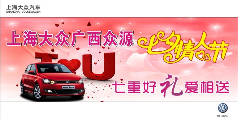 浪漫七夕節(jié)上海大眾廣西眾源七重大禮送不停!選擇一個(gè)愛人,相信一個(gè)品牌。上海大眾Polo車系絕對(duì)是你們甜蜜的選擇!凡8月6日進(jìn)店賞車購(gòu)車,現(xiàn)場(chǎng)七重好禮等您拿!一切只為愛!還等什么?買輛新車過七夕,讓你們的甜蜜持續(xù)升溫吧!