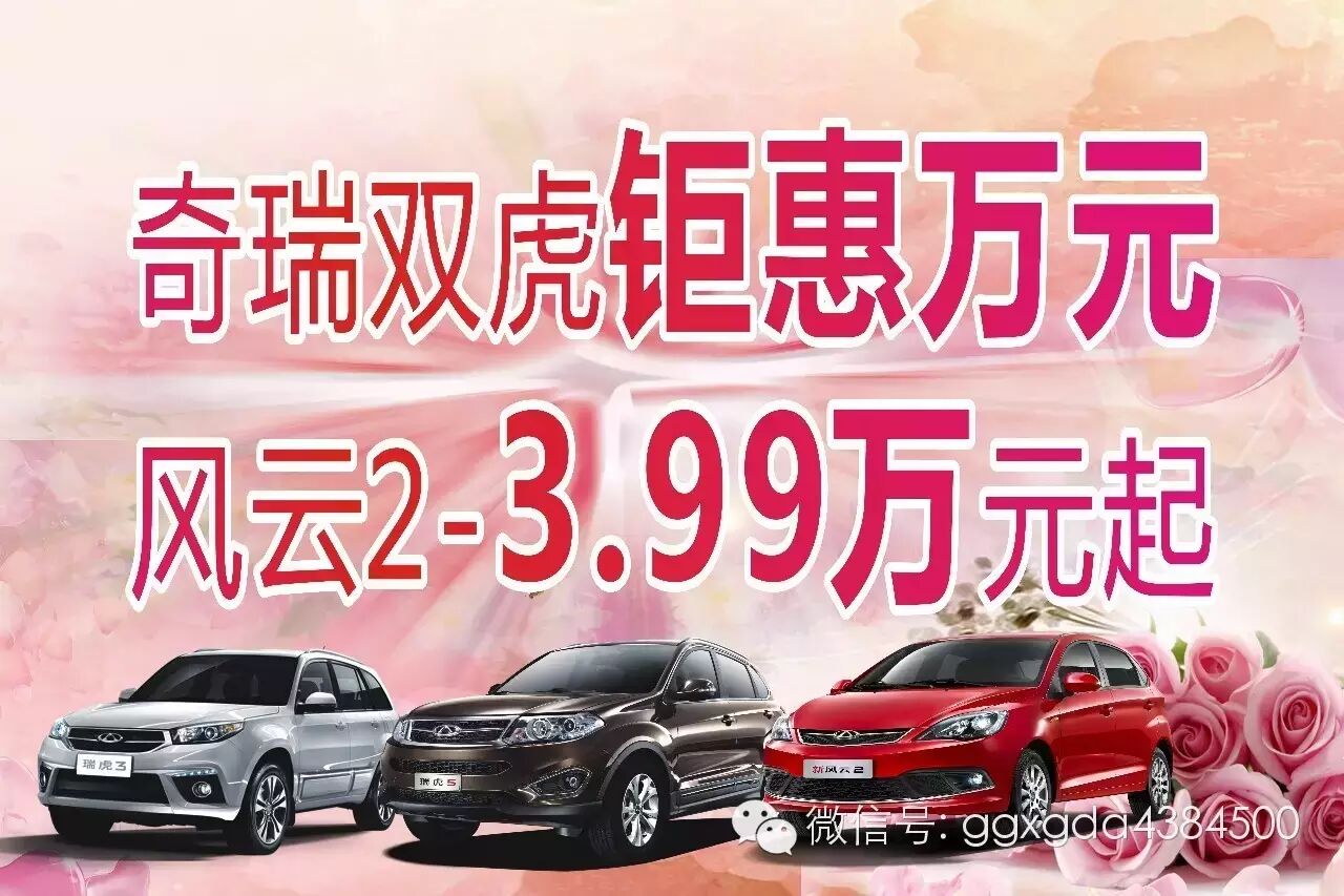 2、雙虎鉅惠,新瑞虎5免兩年利息,瑞虎3-10寸導(dǎo)航鉅惠10000元。