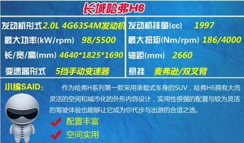 動力方面,采用了成熟的2.0L三菱4G63系列自然吸氣發(fā)動機,*大功率98千瓦,*大扭矩為186牛米,搭配傳統(tǒng)的五速手動變速箱,顯得非常“適度”,沒有太多激情,但是也更加輕松。這里需要推薦的是另一款動力總成---2.0L TCI柴油發(fā)動機+六速手動變速箱,油門調(diào)教的相對活躍,所以從大概1800rpm時,動力就開始源源不斷的涌出,如果深踩,從2500rpm開始,強烈的推背感就會開始刺激腎上腺。幾公里的試駕下來,明顯感覺到H6的懸掛調(diào)教還是偏硬,并沒有完全妥協(xié)于城市路況,極端的追求舒適性,而是盡量保證懸掛韌性,配合隨動轉(zhuǎn)向技術(shù)和穩(wěn)定桿的采用,控制車輛的彎中姿態(tài),保證了足夠的支撐力。