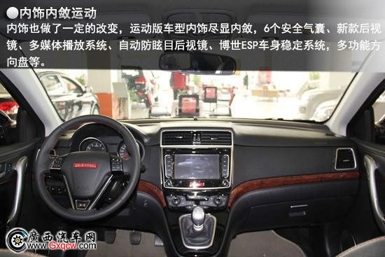 哈弗H6運(yùn)動(dòng)版標(biāo)配的有無鑰匙進(jìn)入/發(fā)動(dòng)機(jī)啟動(dòng)系統(tǒng)、雙溫區(qū)自動(dòng)空調(diào)、GPS導(dǎo)航、中控彩色屏幕、行車電腦、藍(lán)牙電話、可電動(dòng)調(diào)節(jié)/折疊/加熱的外后視鏡等配置。其中精英型、尊貴型更擁有電動(dòng)天窗、定速巡航、倒車影像、真皮座椅、前排座椅加熱、自動(dòng)頭燈。在配置方面,哈弗H6運(yùn)動(dòng)版基本與哈弗H6的其它版本持平。