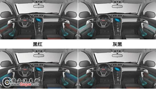 哈弗H2內(nèi)飾提供四種基礎(chǔ)色以及四種套色,基礎(chǔ)色分別是:黑色、灰黑以及黑櫻桃色,套色分別是:黑紅、黑藍、黑棕、黑灰。三款車均可在相應套色車身上定制套色內(nèi)飾,只需在原基礎(chǔ)上加價500元。 三款車型均為鋼琴漆中控面板,定制鈦銀中控面板,則要在原基礎(chǔ)上加價200元。內(nèi)飾的百搭選擇主要集中在色彩方面,個性化的內(nèi)飾配色以及多種顏色選擇,足以滿足各種需求。