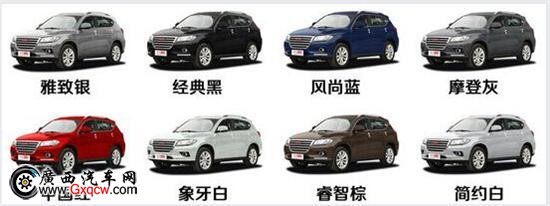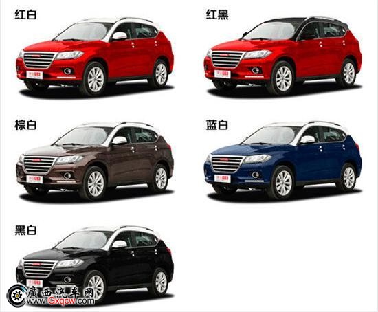 哈弗H2是國內(nèi)首款實現(xiàn)外觀內(nèi)飾百搭的車型,引領(lǐng)潮流,滿足個性化消費。在車身顏色上共有八種單色和五種套色可選,八種單色分別是中國紅、簡約白、象牙白、摩登灰、睿智棕、風尚藍、經(jīng)典黑與雅致銀;五種套色為藍白、紅黑、黑白、紅白和棕白。三款車型均可定制套色車身,在同等價位上加價2500元。