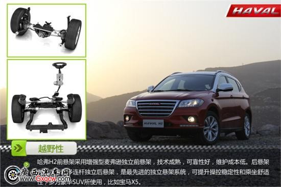哈弗H2采用雙T動力,六速手動變速箱,速比臺階減小,齒比綿密,使得駕駛更平順、更省油,可以適應更多的路況和駕駛需求。哈弗H2前懸架采用增強型麥弗遜獨立前懸架,技術(shù)成熟,可靠性好,維護成本低。后懸架為SUV專用的多連桿獨立后懸架,更可提升操控穩(wěn)定性和乘坐舒適性,多為寶馬X5等豪華SUV采用。