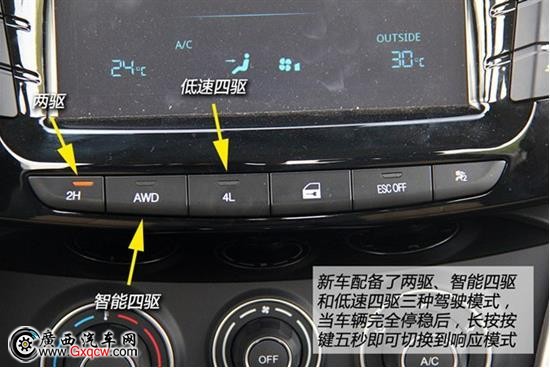 風(fēng)駿6分別搭載了2.0T和2.4L兩套動力總成,同時(shí)還分為汽油版和柴油版兩個(gè)版本。這次試駕的車型為2.0T柴油版車型,*大輸出功率為95kW,峰值扭矩可以達(dá)到305Nm。與之匹配的是一臺6速手動變速箱,換擋過程十分平順。此外,該車采用了前雙叉臂式扭桿彈簧獨(dú)立懸掛,后鋼板彈簧非獨(dú)立懸掛。風(fēng)駿6還配備了兩驅(qū)、智能四驅(qū)和低速四驅(qū)三種駕駛模式。