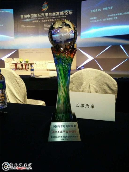 2014年11月20日,由中國汽車報(bào)社、中國汽車產(chǎn)業(yè)經(jīng)濟(jì)研究院主辦,中國汽車工業(yè)協(xié)會等五家汽車行業(yè)機(jī)構(gòu)協(xié)辦的“首屆中國國際汽車電商高峰論壇”在廣州隆重舉行。本屆論壇以“聚能量·開啟汽車營銷e時(shí)代”為主題,共同探討汽車電商的機(jī)會與挑戰(zhàn)。長城汽車憑借對哈弗商城平臺的成功搭建以及O2O電商模式的深度運(yùn)用,榮獲“中國汽車電商探索獎-2014年度平臺首創(chuàng)獎”。