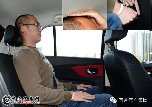 身高176cm的人兒坐在前排,頭頂還有一拳的空間剩余哦。坐在后排,頭部空間有一指,腿部的空間有一拳一指。