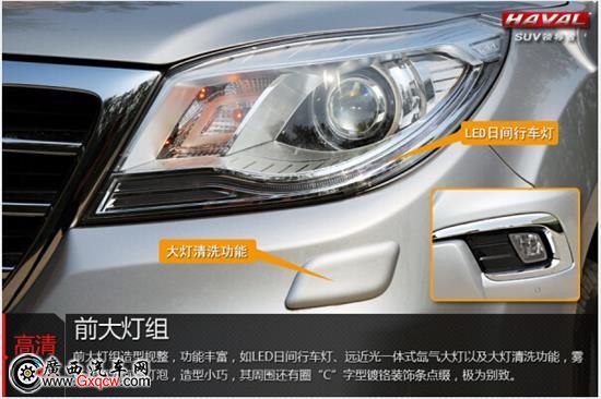 哈弗H9采用鷹眼式氙氣大燈設(shè)計,勾勒出極具攻擊力的前部造型,霸氣威武。內(nèi)嵌的雙菱形燈具邊框,并以鍍鉻邊條勾勒出整體輪廓,視覺效果提升很大。同時,前大燈還配備了LED日間行車燈和大燈清洗功能,提升了行駛安全性。