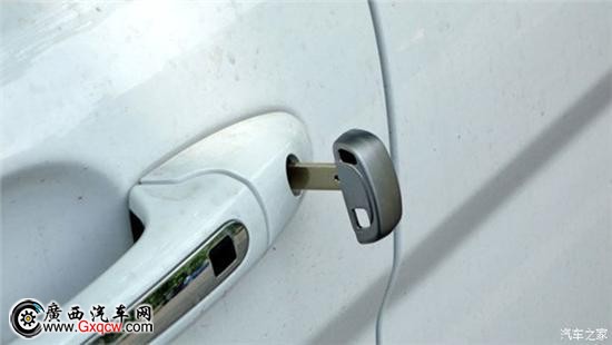 即便是智能鑰匙沒電了也不用著急,在車門把手上仍然設置了鑰匙孔。將智能鑰匙拆開,將機械鑰匙插入鎖孔,像正常開門一樣操作即可。