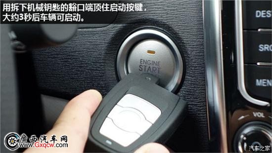 還是先將機械鑰匙拔出,但這次是用智能鑰匙的部分。將鑰匙豁口頂住啟動按鍵,持續(xù)大概3秒時間車輛就啟動了。
