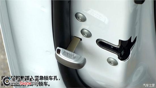 我想很多人有這樣的擔憂,鑰匙沒電了可怎么鎖車。科鋵嵏緵]有必要擔心,哈弗早已替您想到這種特殊情況了。依然是使用機械鑰匙在車門側面的小孔里戳一下,然后再關上車門即可。