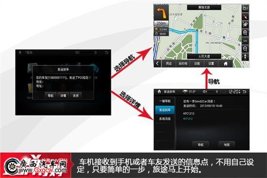 同時(shí),用戶還可以將目的地發(fā)送到自己或者車友的愛車上;車主也可以通過短信分享功能,免費(fèi)將目的地分享給自己的朋友。