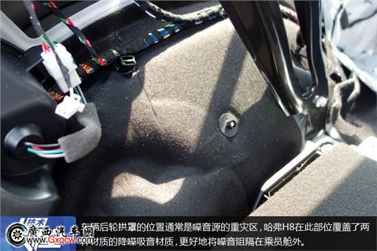 通常車輛的后備廂部分也是重要的噪音源,特別是來自輪胎、懸架系統(tǒng)以及風(fēng)等形成的混合噪音,所以在此區(qū)域加強(qiáng)隔音降噪同樣很重要。哈弗H8在此方面可謂下足了功夫。
