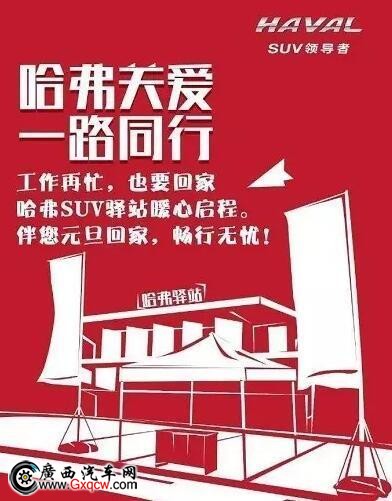 冠軍哈弗,榮耀同行!為了感恩眾多車主對哈弗品牌的支持和厚愛,12月31日至1月2日,“哈弗與你心連心”活動暖心啟程:哈弗SUV將在河北涿州、北京、承德等人流量較大的高速服務(wù)區(qū)開設(shè)哈弗暖心驛站,為過往的車主提供車輛檢測、應(yīng)急食品(藥品)供應(yīng)、交通引導(dǎo)、周邊信息咨詢等服務(wù),不論您是否為哈弗車主,都能免費享受哈弗驛站的貼心服務(wù),伴您元旦回家路暢行無憂!