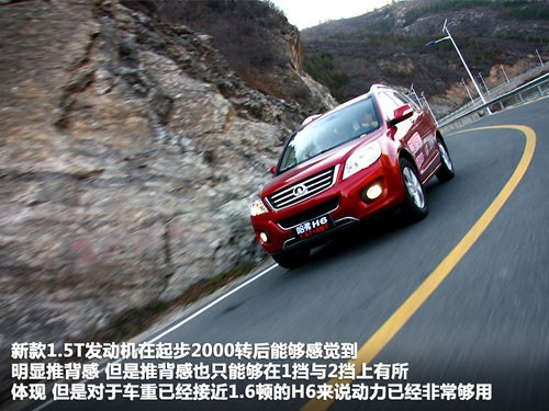 長(zhǎng)城哈弗H6搭載GW4G15B型號(hào)發(fā)動(dòng)機(jī),這款發(fā)動(dòng)機(jī)是長(zhǎng)城公司自主研發(fā)的一款小排量渦輪增壓發(fā)動(dòng)機(jī),相比長(zhǎng)城c50所搭載的GW4G15T發(fā)動(dòng)機(jī)動(dòng)力上有明顯增強(qiáng)。新款1.5T發(fā)動(dòng)機(jī)在起步2000轉(zhuǎn)后能夠感覺(jué)到明顯推背感,但是推背感也只能夠在1擋與2擋上有所體現(xiàn),但是對(duì)于車(chē)重已經(jīng)接近1.6頓的H6來(lái)說(shuō)動(dòng)力已經(jīng)非常夠用。將車(chē)速提升到70公里每小時(shí)以后,這款1.5T發(fā)動(dòng)機(jī)動(dòng)力表現(xiàn)就比較平淡,速度攀升雖然不算慢,但卻沒(méi)有了初段那樣的加速感。