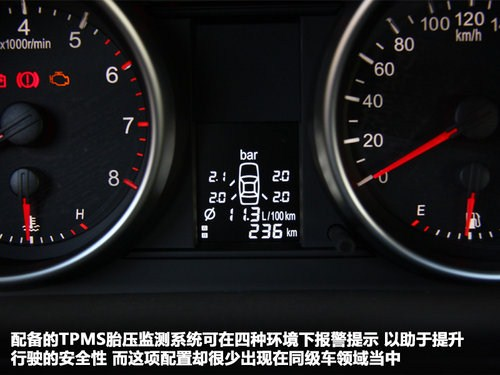 炮筒式儀表盤(pán)似乎已成為當(dāng)下車(chē)型的主流樣式,整體造型十分簡(jiǎn)潔,清晰便于閱讀。中央不大的單色液晶屏卻是其中*大的亮點(diǎn),配備的TPMS胎壓監(jiān)測(cè)系統(tǒng)可在四種環(huán)境下報(bào)警提示,以助于提升行駛的安全性,而這項(xiàng)配置卻很少出現(xiàn)在同級(jí)車(chē)領(lǐng)域當(dāng)中。