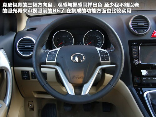 哈弗h6的內(nèi)飾風(fēng)格表現(xiàn)出了一款城市suv的居家氣質(zhì),淺色內(nèi)飾與簡(jiǎn)約的內(nèi)部布局,不會(huì)讓人感覺(jué)到壓迫感與復(fù)雜感。真皮包裹的三幅方向盤(pán),觀感與握感同樣出色,至少我不能以老的眼光再來(lái)審視眼前的H6了,在集成的功能方面也比較實(shí)用,包含有音響系統(tǒng)的控制、藍(lán)牙免提電話以及定速巡航功能,而最重要的則是這個(gè)方向盤(pán)可以提供四方向的調(diào)節(jié),人性化方面表現(xiàn)更出色。