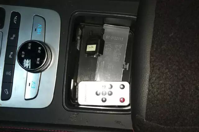 隨車還配送一個(gè)遙控器,從功能鍵來(lái)推測(cè)這應(yīng)該是利于后排乘客控制前方大屏幕,這是比亞迪的一項(xiàng)創(chuàng)新!更多的考慮一屏多用,更車內(nèi)乘客更能享受科技的樂(lè)趣。