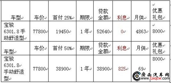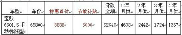 一、 超值分期,巧用GMAC車貸寶駿購車“0”負擔:信貸多種還款方式,0利率、0擔保,首付低至8888元,同享3000元節(jié)能補貼,1.8L全系貼息超4000元!