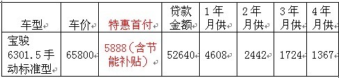 1、寶駿分期購車首付低至5888元(含節(jié)能補貼);