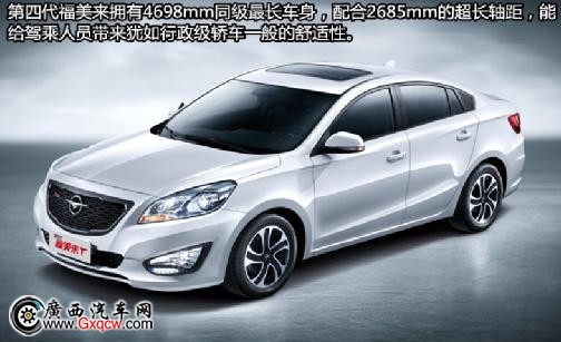 大空間是基礎(chǔ)條件。一款擁有大空間的轎車才能帶給您更加舒適的感受。第四代福美來(lái)雖然定位于緊湊型家用轎車,但是其堪比中級(jí)轎車的4698mm同級(jí)最長(zhǎng)車身配合2685mm的超長(zhǎng)軸距,卻能帶給您猶如行政級(jí)轎車一般的超高舒適性。