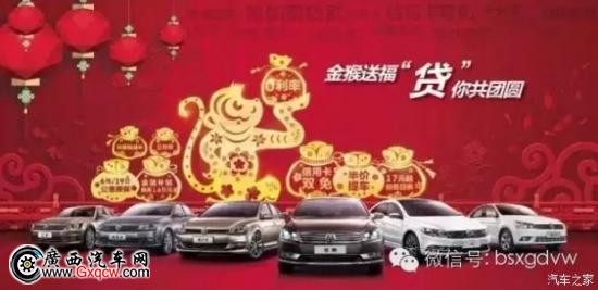 消費(fèi)者貸款買車*大的關(guān)注點(diǎn)在于是否劃算,不想貸款利率高,更不愿按揭還款壓力大。一汽-大眾推出金猴送福活動(dòng),即日起購(gòu)買一汽大眾指定車型,尊享0利率,*高利息補(bǔ)貼1.6萬(wàn)元;同時(shí)“貸”您尊享超低日供,最低僅需17元起!過(guò)年“買大件兒”0壓力,大收獲!輕松擁有心儀愛(ài)車!