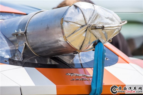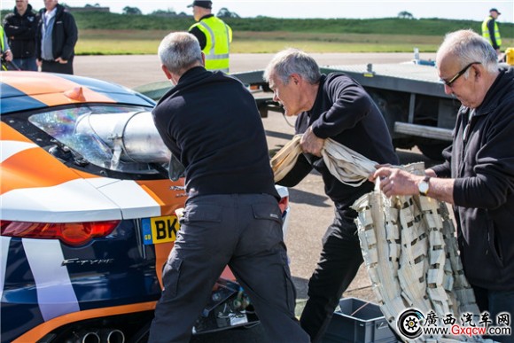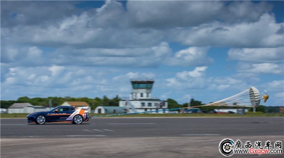為了能在首次出征前完成對系統(tǒng)的全面測試,項(xiàng)目技術(shù)合作伙伴捷豹攜旗下F-TYPE R Coupé在前軍用跑道上試跑,并要在行駛速度超過290km/h之后打開減速傘。