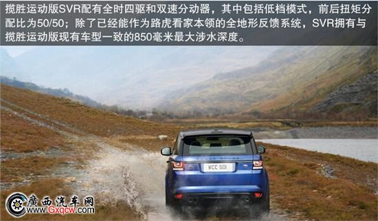 具 備相當(dāng)程度 的越野能力才有資格背負(fù)“攬勝”之名,攬勝運(yùn)動版SVR配有全時四驅(qū)和雙速分動器,其中包括低檔模式,前后扭矩分配比為50/50。除了已經(jīng)能作為路虎看 家本領(lǐng)的全地形反饋系統(tǒng),SVR擁有與攬勝運(yùn)動版現(xiàn)有車型一致的850毫米*大涉水深度,其拖曳重量可達(dá)3000公斤。