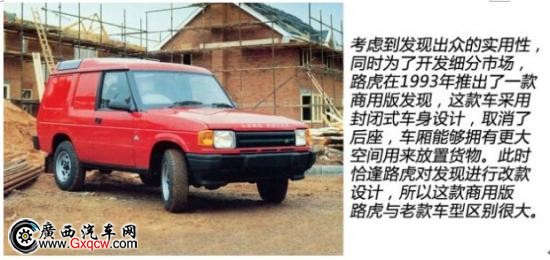 同樣是1993年,路虎推出了搭載2.0升直列四缸發(fā)動機的發(fā)現(xiàn),這套動力系統(tǒng)源自羅孚T16轎車,由于其結構復雜且偏重于高轉速,在注重多路況行駛的四驅車上并不常見。盡管這臺2.0升發(fā)動機動力強勁,但扭矩遠不及V8汽油發(fā)動機和Tdi渦輪增壓柴油發(fā)動機。同年,路虎為了開創(chuàng)細分市場推出了發(fā)現(xiàn)商用版,該車基于發(fā)現(xiàn)三門版打造而來,取消后座并采用封閉式車廂使裝載能力大大提升,機械結構與普通版發(fā)現(xiàn)保持一致,消費者可選擇汽油或柴油發(fā)動機,這款車誕生時恰好趕上了發(fā)現(xiàn)小改款時期,大燈尺寸有所增加,為了應對新出臺的法規(guī),剎車燈被移至后杠兩側,駕駛員安全氣囊成為標配,藍色內飾則不再繼續(xù)使用。