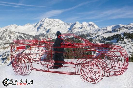 這 件藝術(shù)裝置作品融合了以1:1比例打造的攬勝極光敞篷版藝術(shù)線框車(chē),造型別致,與Courchevel白雪皚皚的山間美景交相輝映。被安置于駕駛席的大猩 猩雕塑是Orlinski的代表作之一。作品構(gòu)思傳遞了這位藝術(shù)家一貫倡導(dǎo)的“Born Wild”理念,旨在呼吁人們保持積極的人生態(tài)度,并學(xué)會(huì)克制自己,用文明的方式表達(dá)情緒。這一設(shè)計(jì)主題完美體現(xiàn)了攬勝極光的核心價(jià)值——兼具強(qiáng)悍的越野 能力與卓越的城市駕駛體驗(yàn)。