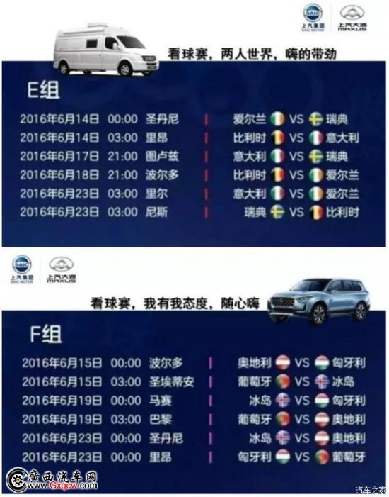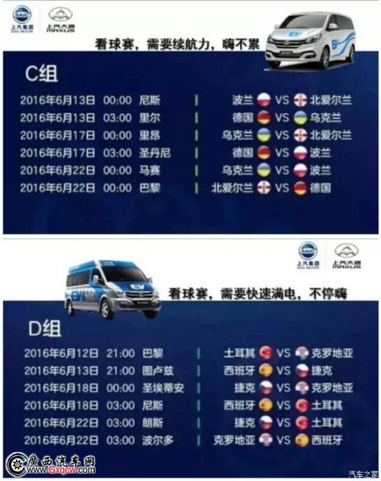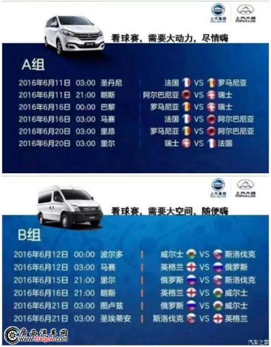 把賽程表存在手機(jī)里,早上起來(lái)先看一眼,記住比賽對(duì)陣,也就幾點(diǎn)、誰(shuí)對(duì)誰(shuí),見(jiàn)人就提醒對(duì)方,類似”今兒晚上9點(diǎn)歐洲杯有西班牙對(duì)捷克,明兒凌晨3點(diǎn)還有比利時(shí)對(duì)意大利,千萬(wàn)別忘了看啊!”對(duì)方不僅會(huì)對(duì)你肅然起敬,且還會(huì)感覺(jué)你的一份特別的貼心。上汽大通給大家準(zhǔn)備了最全歐洲杯時(shí)間表!