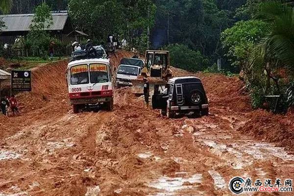 這種路面就算是SUV也是要特別小心的,比較軟的路面很容易被碾壓成中間高兩邊低的地形,你要是跟著車痕走,很容易被石頭磕傷底盤、保險杠的,所以遇到這種路面最安全還是跨著走,只要側(cè)傾角度不大,是沒問題的。